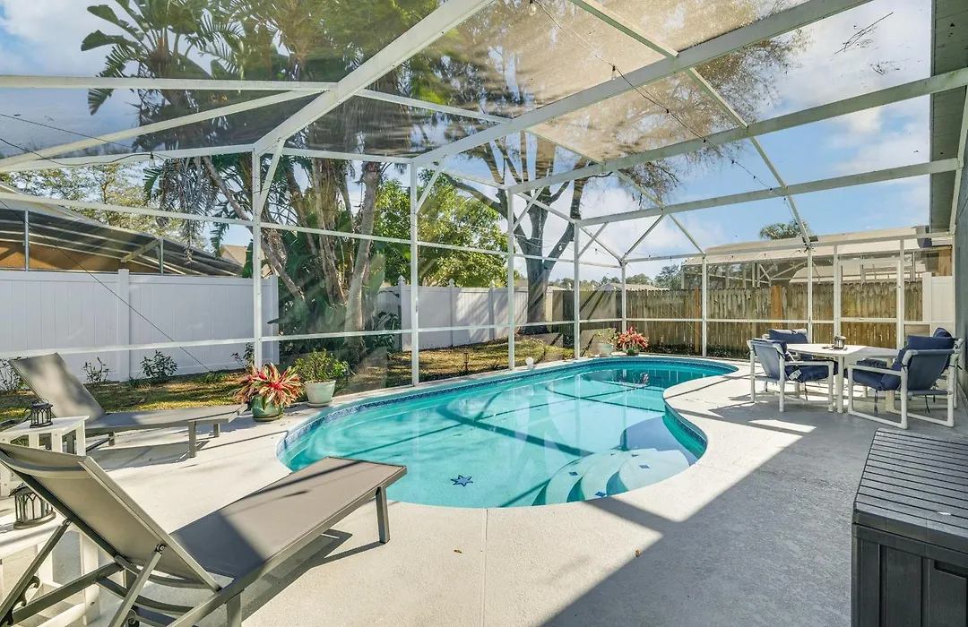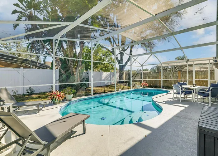 A acomodação de Orlando está equipada com forno e máquina de lavar loiça para uma área de refeições ao ar livre. Com a culinária Amerikaanse, o bar Shipwreck Sally's Bar & Grill fica a aproximadamente 6 km de distância. Os hóspedes podem chegar facilmente ao aeroporto em Orlando Internacional, localizado a 55 km desta propriedade.